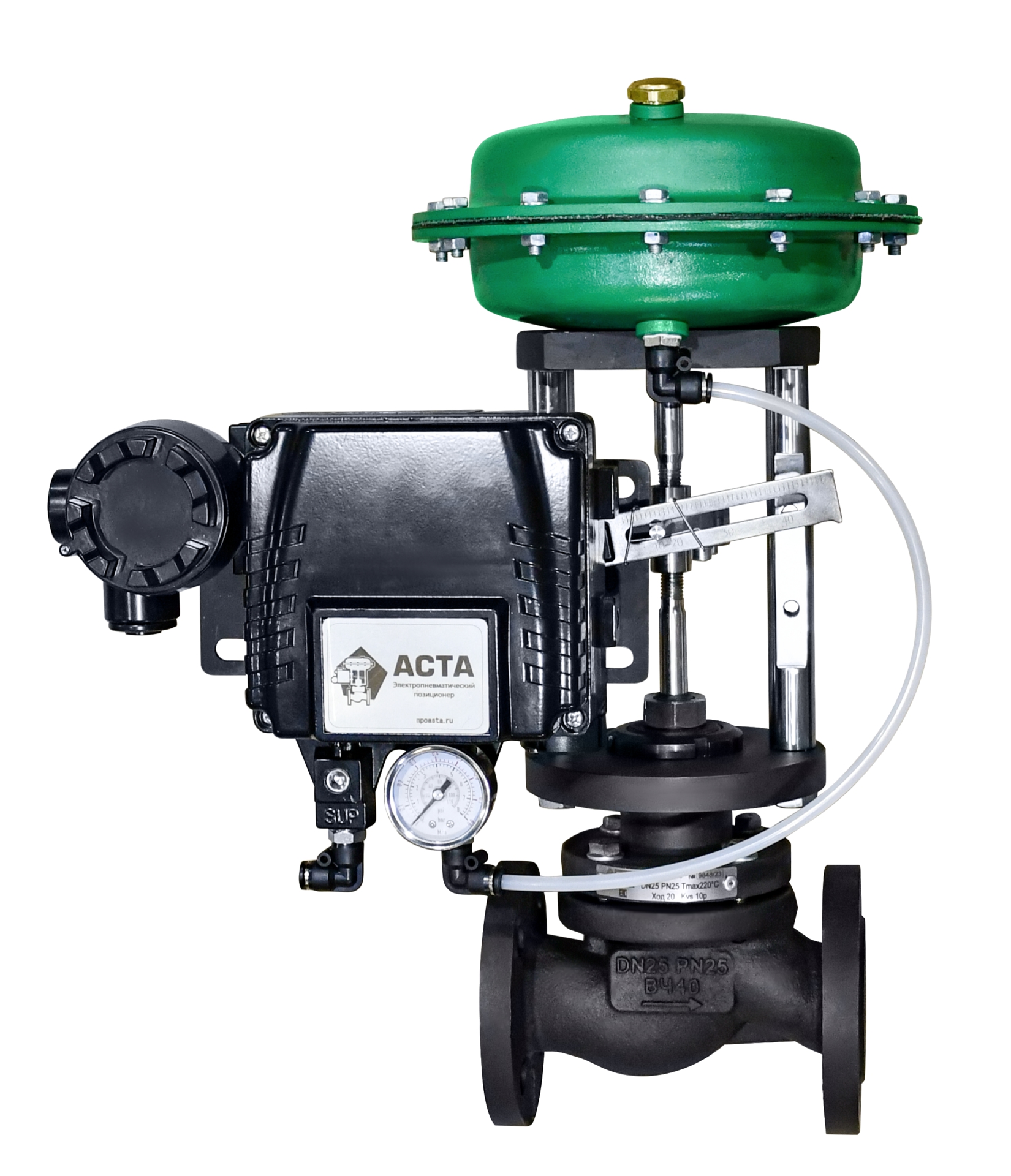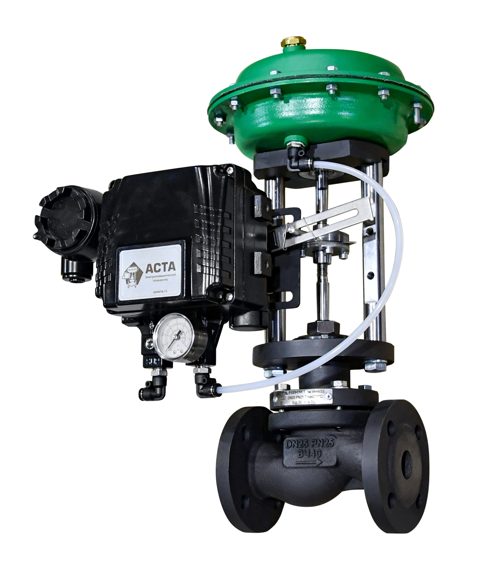 АСТА серии Р100 – односедельный двухходовой регулирующий клапан, управляемый электрическим или пневматическим приводами, предназначенный для точного дистанционного регулирования или перекрытия потока рабочей среды.
